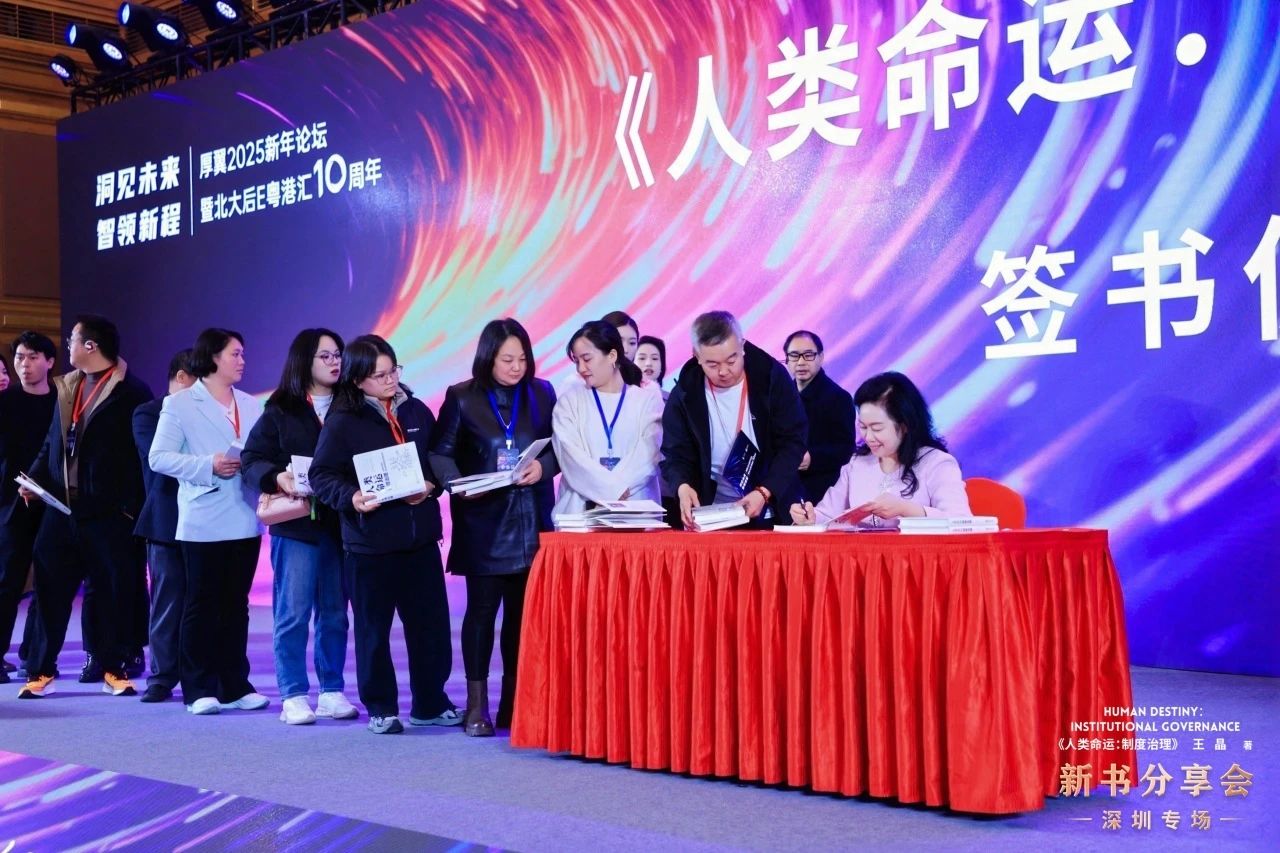 2025年1月18日,以“执大道,天下往”为主题的王晶《人类命运:制度治理》新书分享会在深圳举办。本次分享会是继北京、西安、上海之后,在深圳以《人类命运:制度治理》这本书为契机,通过东南西北传播大道思想、让更多的天下人关注人类命运。